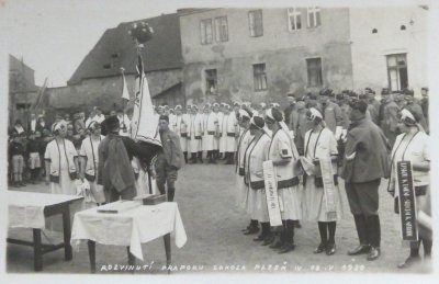 Prapor byl předán žactvu 28. 5. 1932 v průběhu tělocvičného večera a slavnostního věnečku v nedávno dokončené sokolovně na Petříně. Byl nalezen shodou šťastných okolností koncem roku 2018 spolu s hlavicí sokola a horní polovinou žerdě. Spodní polovina žerdě se nedochovala. Zda se jedná o hlavici na prapor dle...