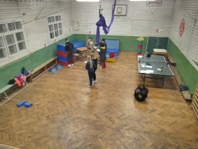 Nepodařilo se dohledat žádné podrobnější informace. Jednalo se zřejmě o provizorní zázemí, před dostavbou nové sokolovny. Pozice v mapě je vyznačena pouze orientačně (přesnou lokalitu neznáme).