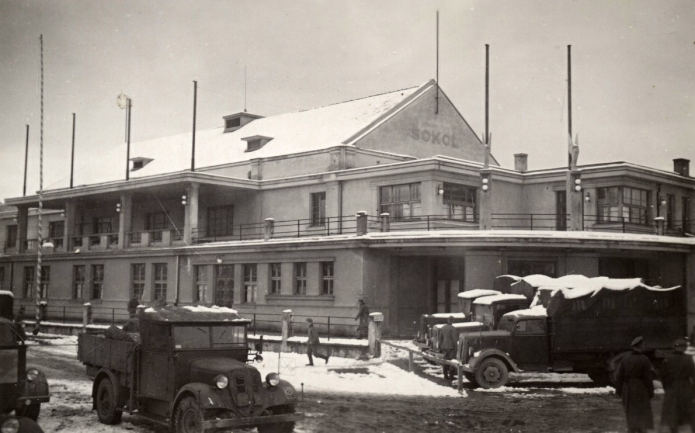 Němci také otloukli nápis Sokol ve štítě budovy a odstranili dva sokolíky ze sloupků nad vchodem. V sokolovně pak pořádali pestré večery pro německou brannou moc – jak hlásaly plakáty.