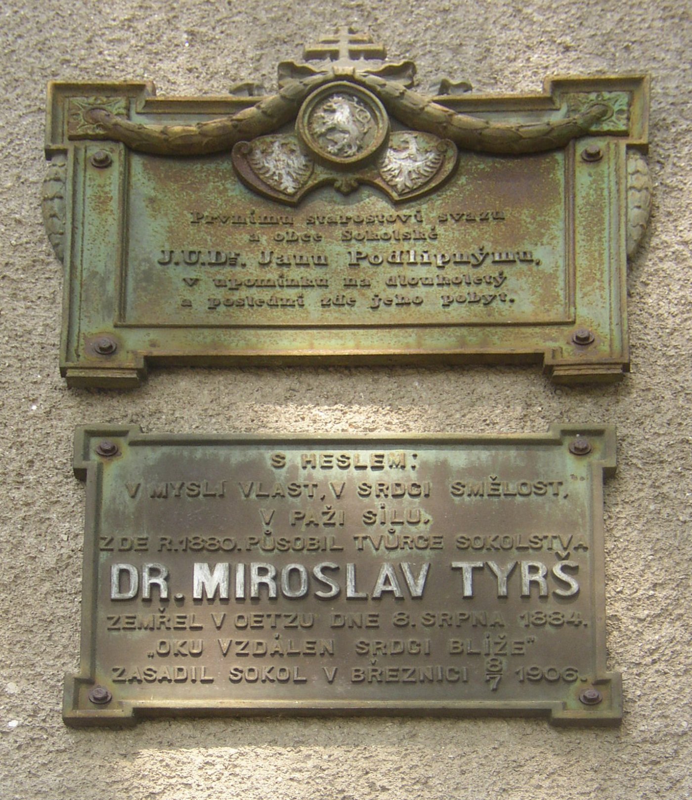 Pamětní deska Dr. Miroslavu Tyršovi za zásluhy o vznik Sokola v Březnici
