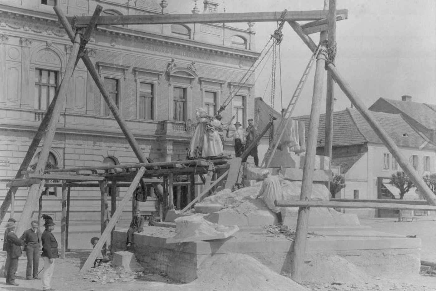 Náklad na jeho vybudování činil v té době cca 20 tisíc korun. Hradilo jej samo tehdejší Českobrodsko, prý i z toho důvodu, že na půdě Českobrodska tento slavný husitský vojevůdce skonal. Postavení pomníku iniciovala a financovala Tělocvičná jednota Sokol v Českém Brodě. Do podstavce pomníku byly dodatečně vloženy schránky s prstí z bojišť českých legionářů u Zborova, Doss Alto a Vouziers. Druhou světovou válku připomíná prsť z Osvětimi, Lidic a Dukly. V roce 1975 byla na pomník umístěna a odhalena pamětní deska obětem fašismu.