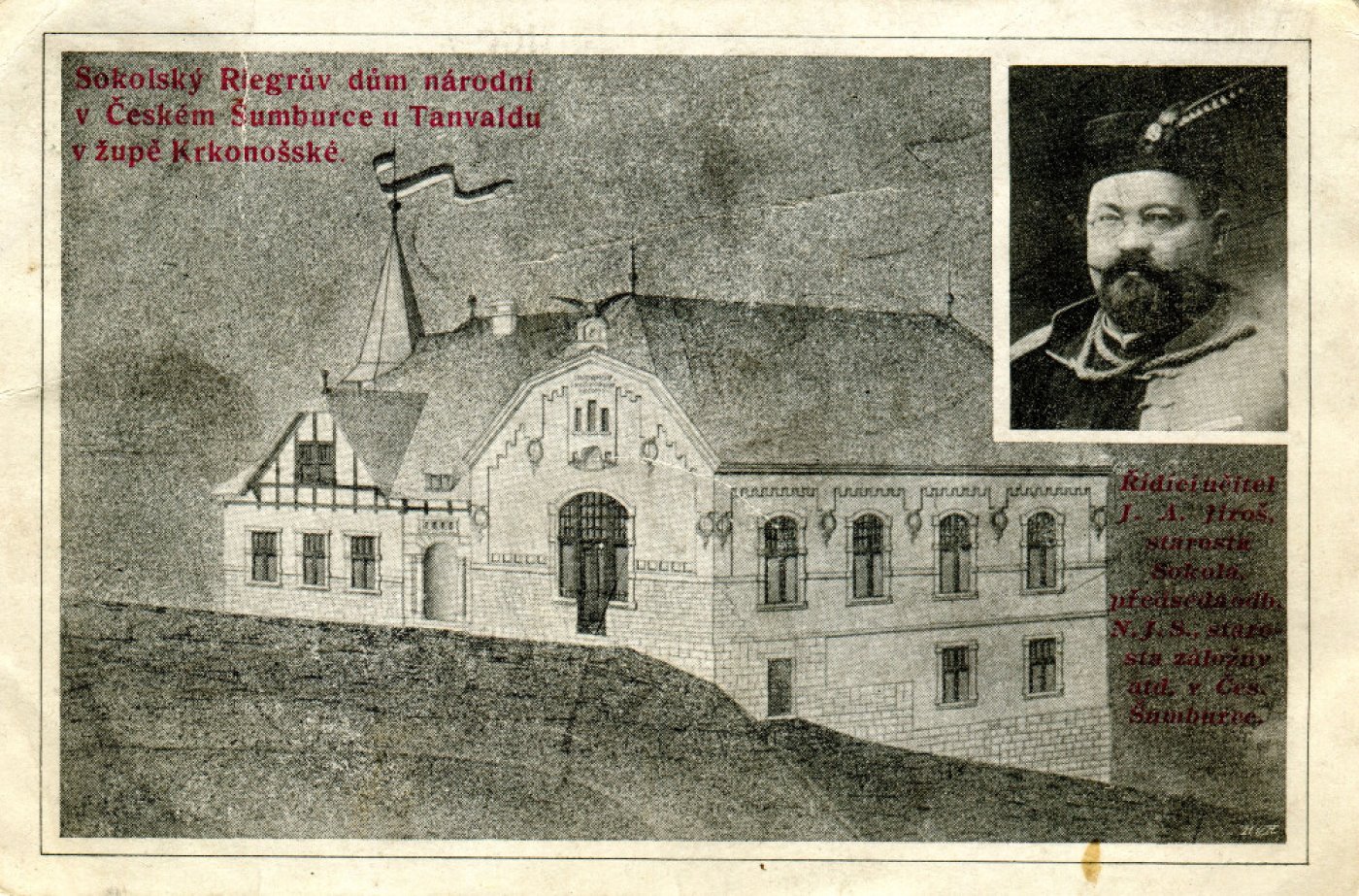 V jabloneckém okresním archivu se dochovala dokumentace stavba nového objektu nazvaného Riegrův dům. Stavbu prováděl šumburský stavitel Karel Pekárek podle plánů datovaných 30 .4. 1909. Později tento objekt dostane č.p. 420. Slavnostní otevření proběhlo v neděli 18.9.1910. Dne 23.2.1910 byla p. Jirošovi coby předsedovi Sokola Český Šumburk udělena hostinská a výčepnická koncese.